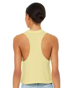 52% combed and ring spun cotton, 48% polyester; 32 singles; Raw arm hole; Racerback; Cropped; Side-seamed; Tear away label